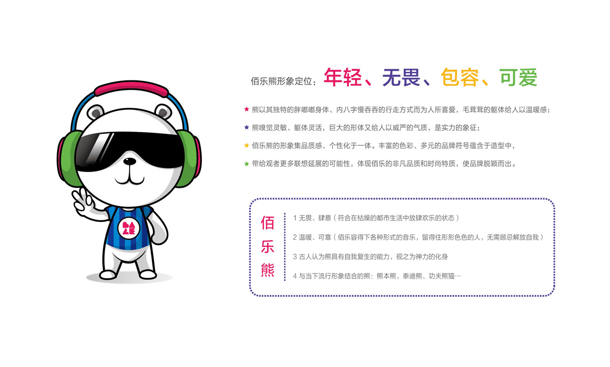 我们以国际通用语言英文结合中文进行了图形结合的专属设计,丰富的色彩运用和多样化的延展赋予品牌灵活多变的形象,打破局限使品牌具有无限可能性。吉祥物的设计也延续灵活多变充满活力的特性,与标志延展融为一体,形成完整的品牌系统。我们希望进入佰乐的人都能从中找到共鸣,感受到那份百分百的轻松与愉悦。